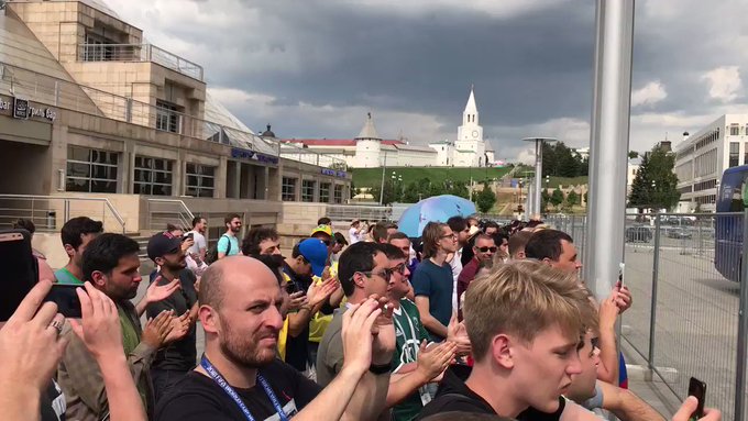 Os primeiros a deixar a concentração, rumo a São Petersburgo, onde encontrarão suas famílias, foram Alisson, Ederson, Cássio, Thiago Silva, Marquinhos, Filipe Luís, Fernandinho, Paulinho, Renato Augusto, Willian e Firmino, além do preparador de goleiros Taffarel - todos devidamente aplaudidos. O número de torcedores apoiando, embora menor que na chegada da delegação a Kazan (muitos já deixaram a cidade), foi expressivo.